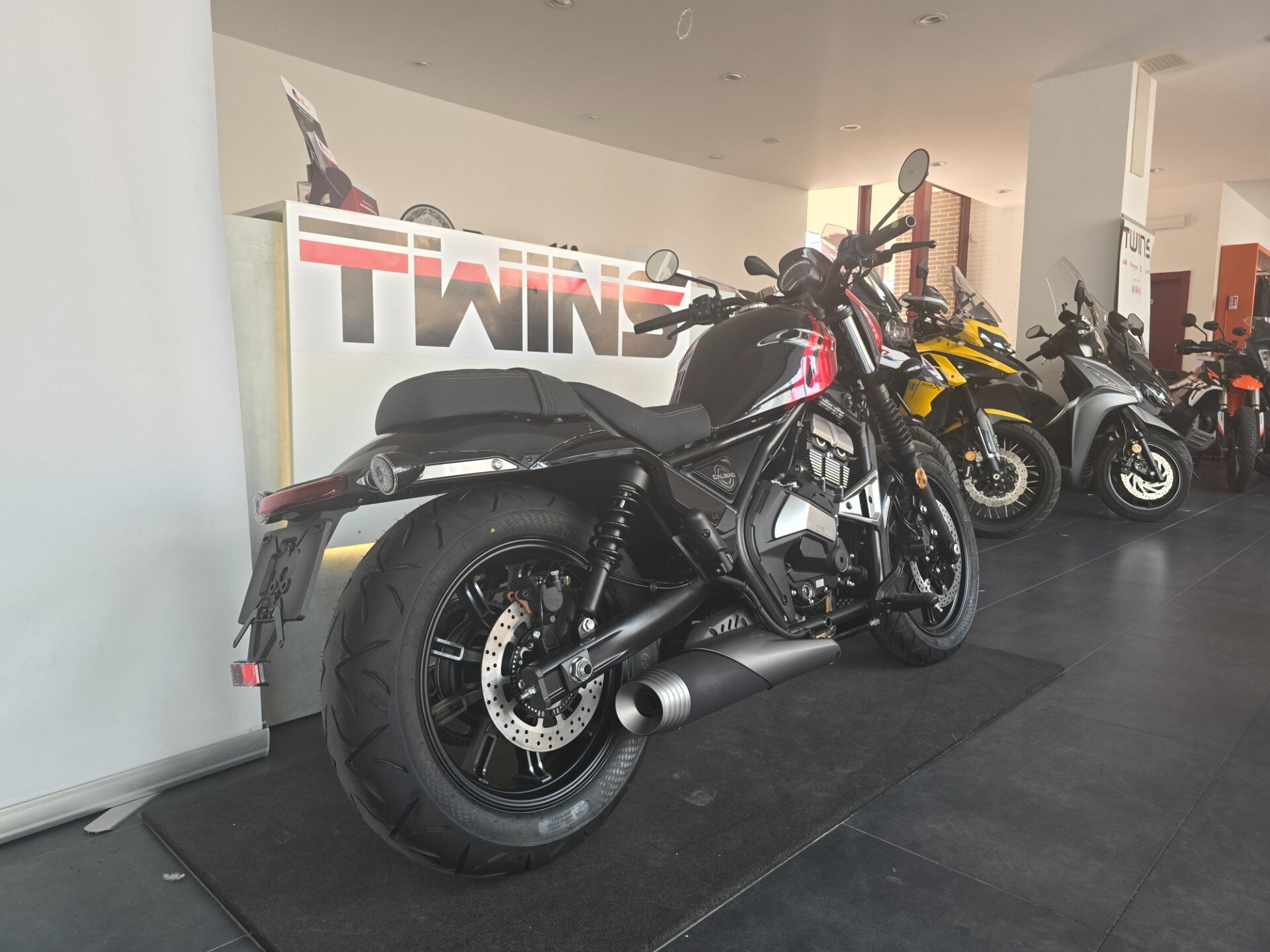 DESCRIZIONE : nuova Calibro 700 con motore bicilindrico di derivazione Kawasaki, trasmissione a cinghia, 3 anni di garanzia, design e progetto tutto italiano! Il prezzo esposto si intende escluso immatricolazione e messa in strada.